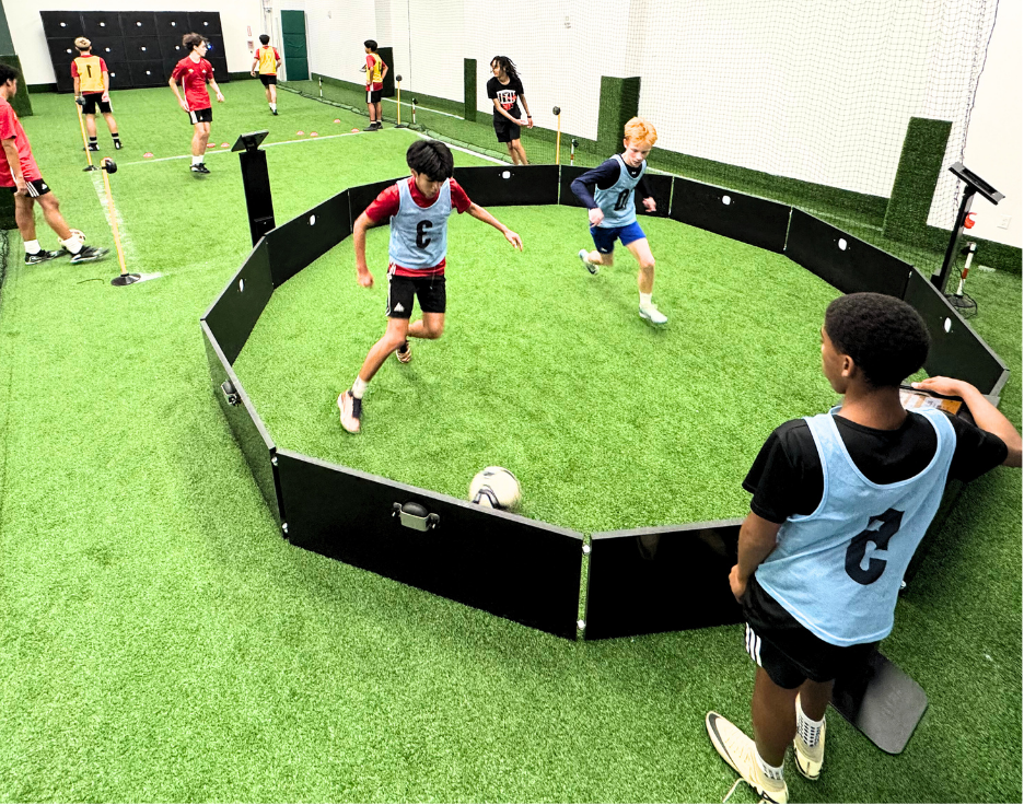 At VOLTA Soccer, the SmartField is at the heart of our cutting-edge training program. It features four advanced tech stations, each designed to enhance specific aspects of a player’s game. By rotating through each station, players experience high-intensity, tech-driven training that covers all fundamental soccer skills—speed, passing, dribbling, and shooting. This holistic approach ensures every session at VOLTA Soccer is a step toward becoming a complete player.